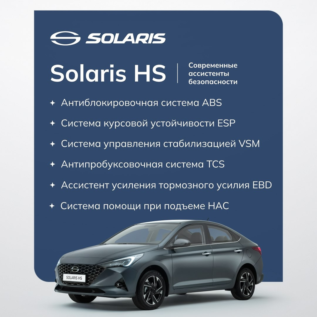 Ваша безопасность — наш главный приоритет! В автомобилях Solaris предусмотрены современные технологии, которые помогают избежать рисков и делают каждую поездку спокойной и уверенной.